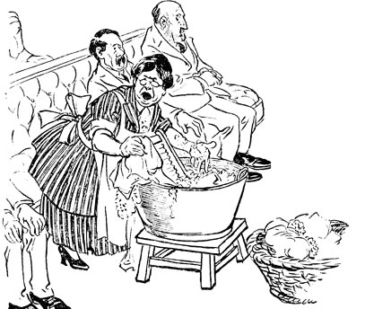 The Bulletin published a cartoon of her scrubbing washing in parliament, with the caption “THE NEW ‘HOUSE’ WIFE”. The Age commented that if women became politicians “there would be many dreary and neglected homes throughout the country sacrificed on the altar of political ambition”.
